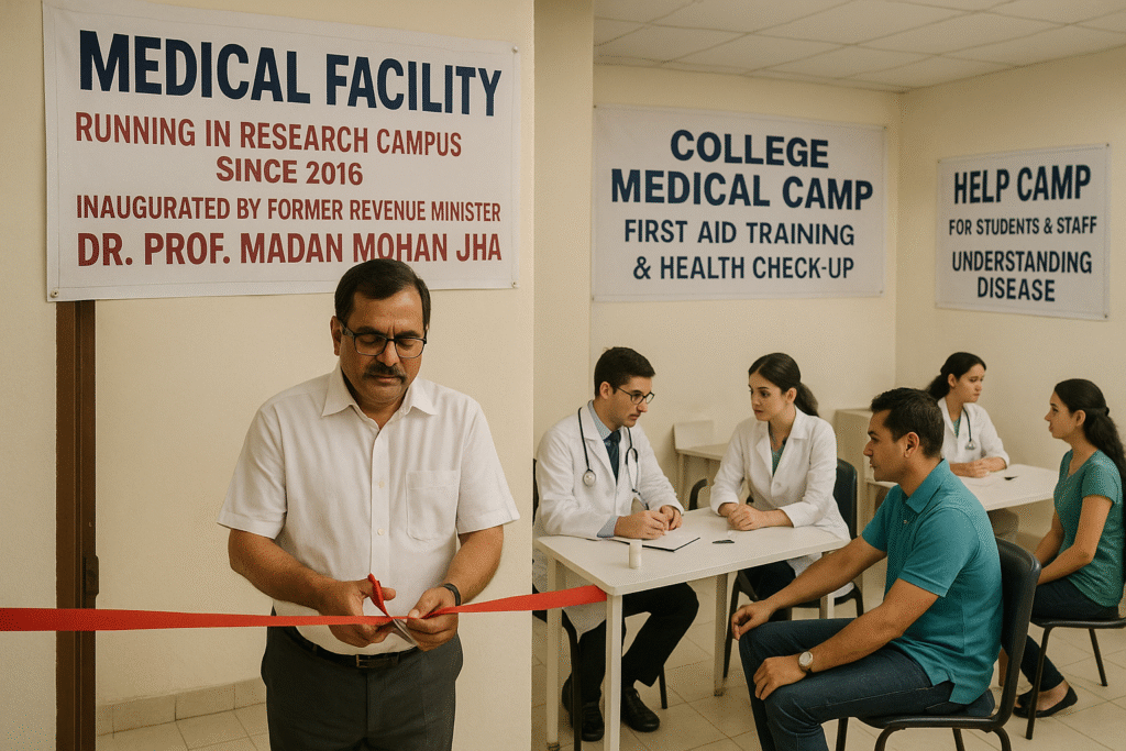 Medical facility services have also been running in the Research campus since 2016 and was inaugurated by former Revenue Minister Dr. Prof. Madan Mohan Jha.